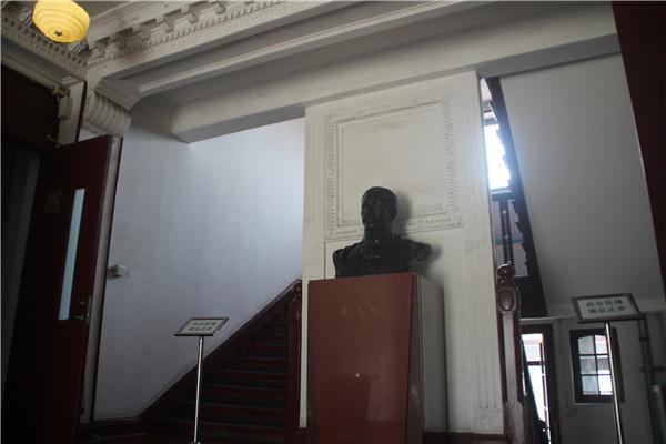 在陈独秀同志工作过的文科学长室,墙面上陈列着当时《新青年》杂志的封面和一些宣传新文化的画册。“行无愧怍心常坦,身处艰难气若虹”,这种共产党人的坦荡胸襟和浩然正气,增强了支部同志对这位革命前辈投身共产主义运动的敬仰之情。