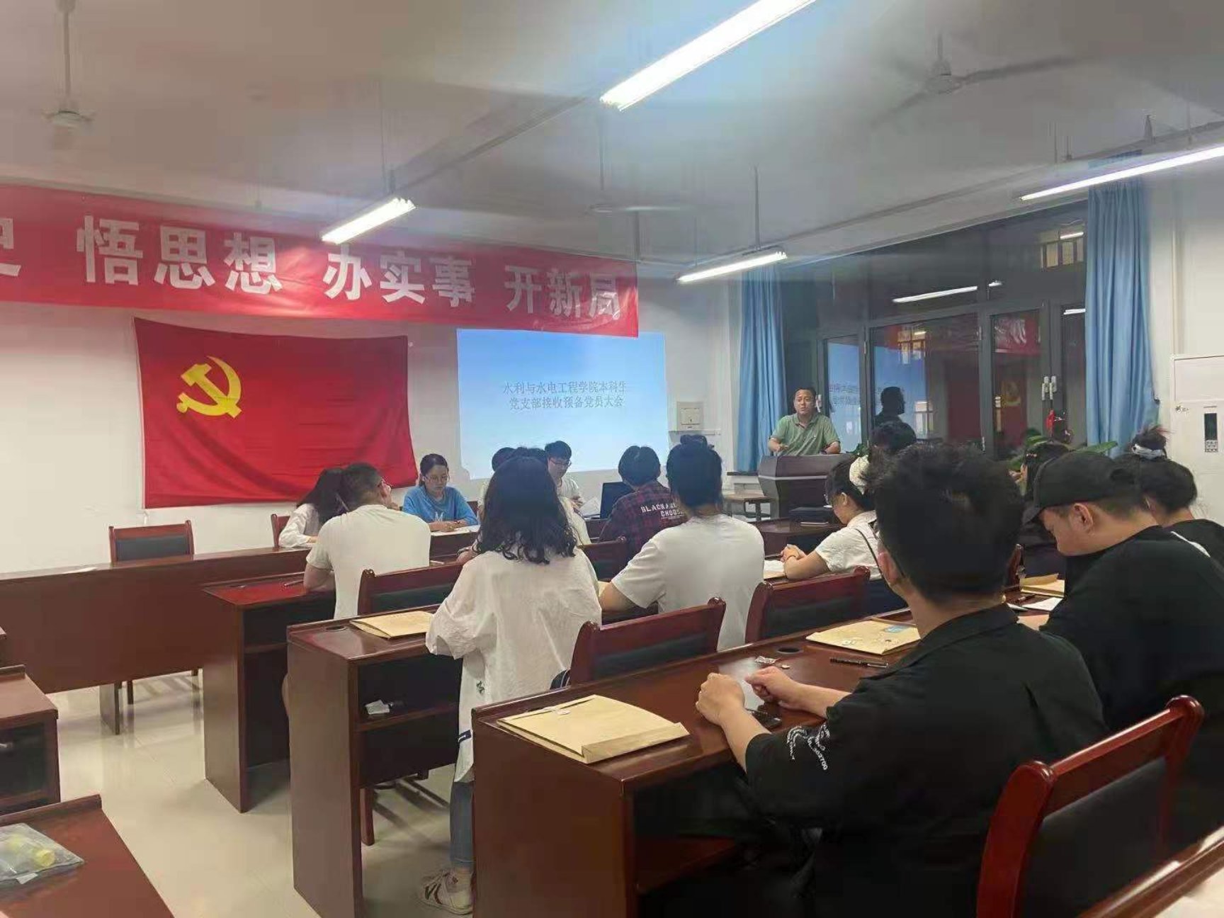 5月21日,水利与水电工程学院本科生党支部在主B512召开了预备党员接收大会,会议由本科生党支部副书记王舒鹤主持,水利与水电工程学院本科生党支部12名正式党员、12名预备党员及16名发展对象参会,主要讨论了16名发展对象的入党问题。学校正处级组织员丁文俊老师出席会议并对支部党建工作进行指导。
