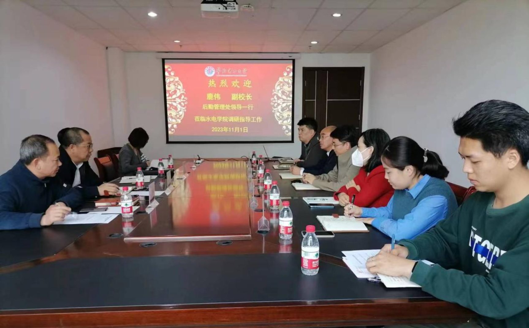 11月1日下午,校党委常委、副校长鹿伟到水利与水电工程学院调研指导工作。后勤服务集团党总支书记吴万凯,后勤管理处处长、后勤服务集团总经理张兵仿,水利与水电工程学院党委书记刘明军、院长张尚弘、党委副书记杜广微、副院长王弋及学院教师和学生代表参加调研工作会议。会议由吴万凯主持。