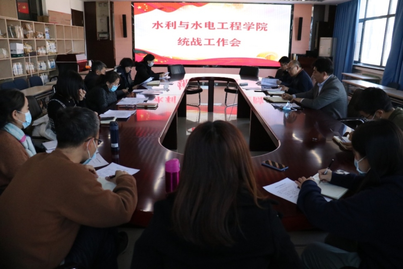 12月31日,水利与水电工程学院党委召开了以“以十九届五中全会精神为指引,凝聚统战力量,助力学院发展”为主题的统战工作会。学院民主党派人士、无党派人士、教师党支部书记受邀参加,学院领导班子全体成员出席会议。会议由学院党委副书记杜广微主持。