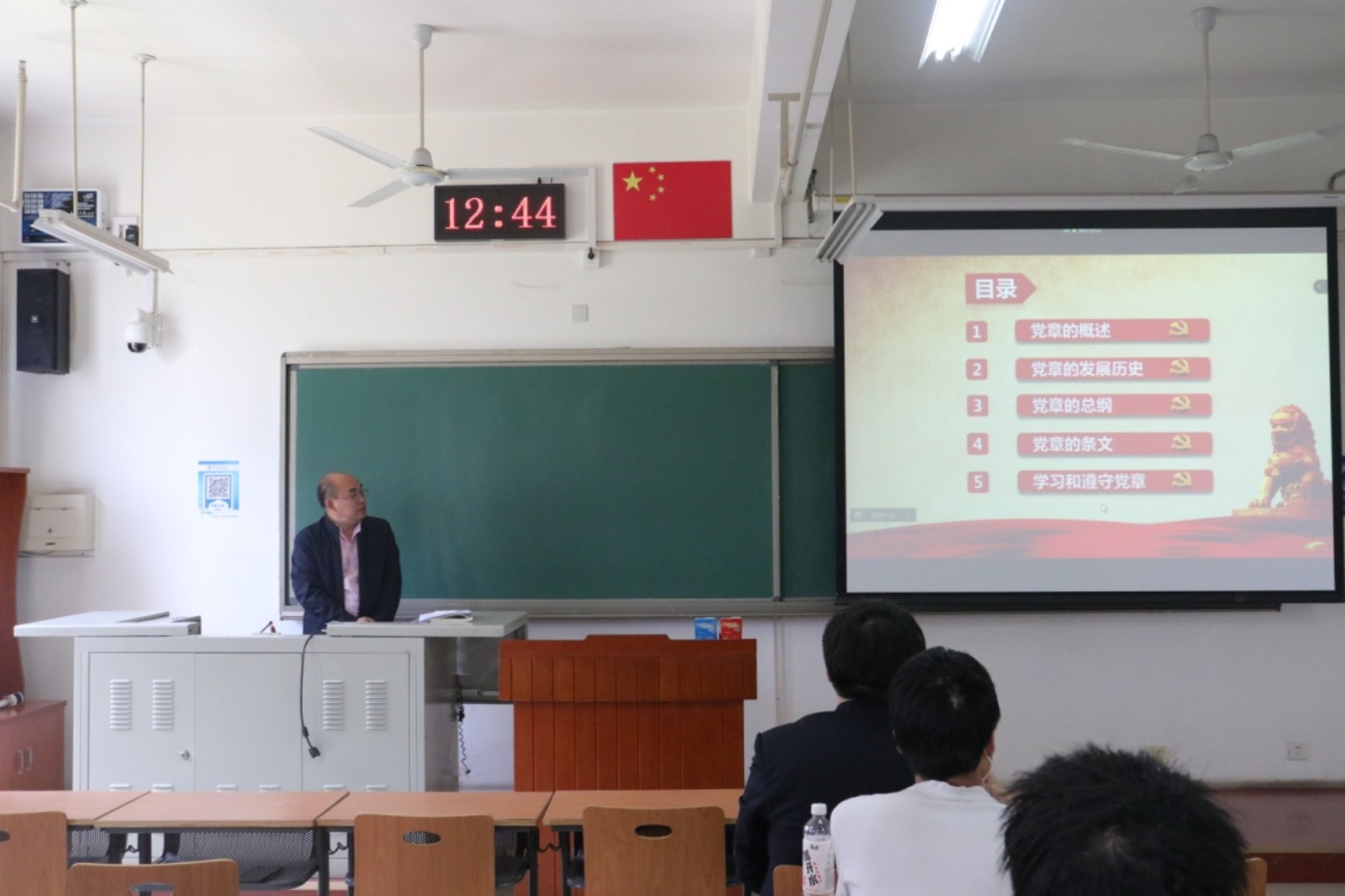 刘明军围绕“学习党章知识,端正入党动机”为入党积极分子讲授党课。从党的基本知识、党章条文的主要内容、党员的行为规范及义务、党的纪律等方面带领大家进行了系统的学习并共同朗读入党誓词。要求大家提高自己的思想觉悟,规范自己的日常行为,牢固树立党章意识,共同维护党章的权威性和严肃性,鼓励大家在学习和工作中历练和培养自己,争取早日成为一名合格的中国共产党员,肩负起建设社会主义现代化强国和中华民族伟大复兴的光荣使命。