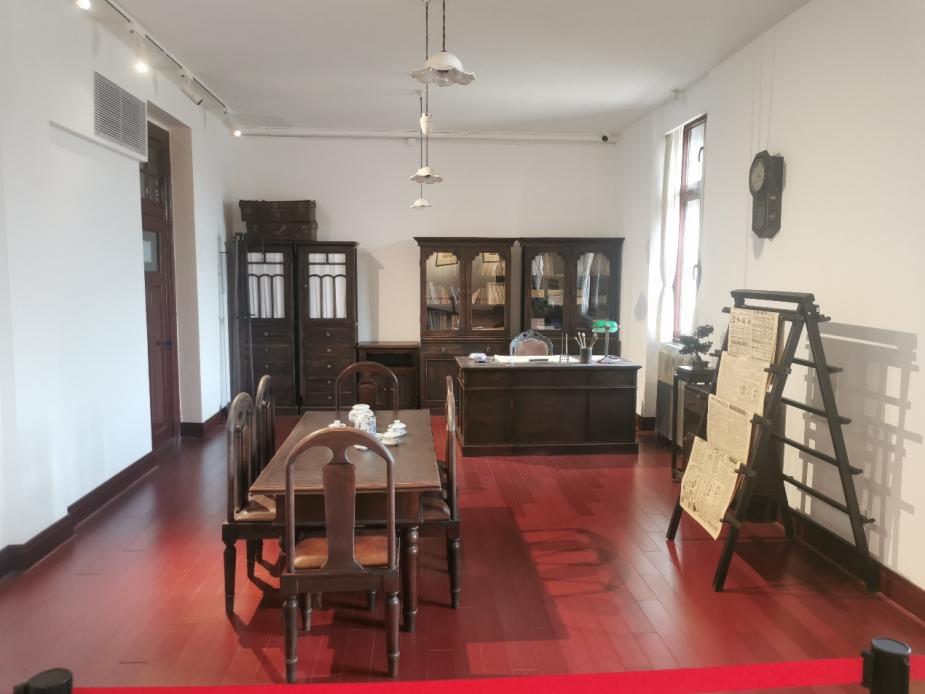 在陈独秀同志工作过的文科学长室,墙面上陈列着当时《新青年》杂志的封面和一些宣传新文化的画册。“行无愧怍心常坦,身处艰难气若虹”,这种共产党人的坦荡胸襟和浩然正气,增强了支部同志对这位革命前辈投身共产主义运动的敬仰之情。