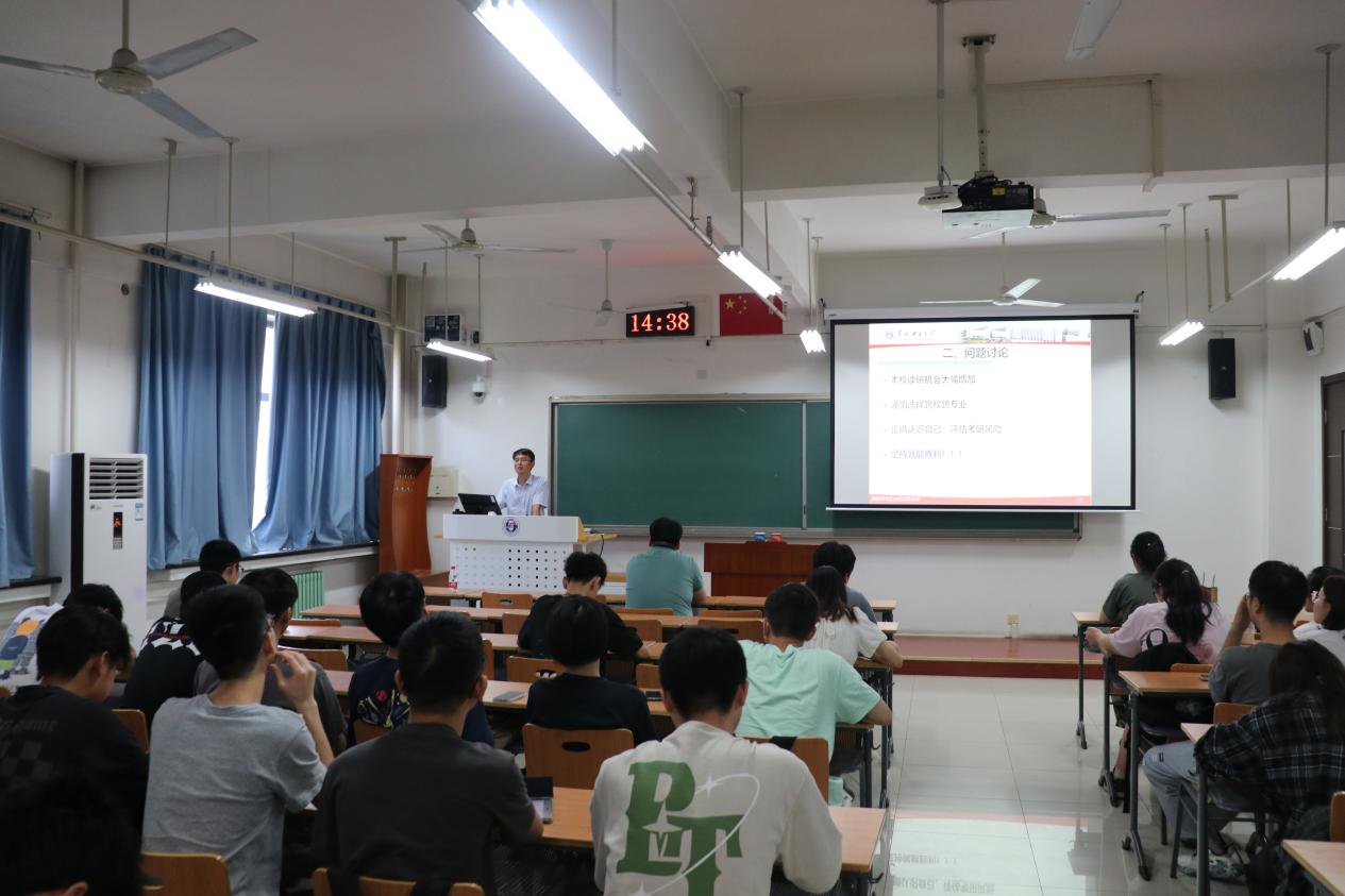 张尚弘全面介绍了学院的基本情况、学科方向、导师队伍、考研报考信息等,对2024届毕业生考研形势进行分析,为同学们精准报考提供支持。张尚弘指出,同学们要明确自身定位,评估考研风险,谨慎选择跨校、跨专业报考,希望同学们能够坚定考研之路、相信坚持就是胜利。