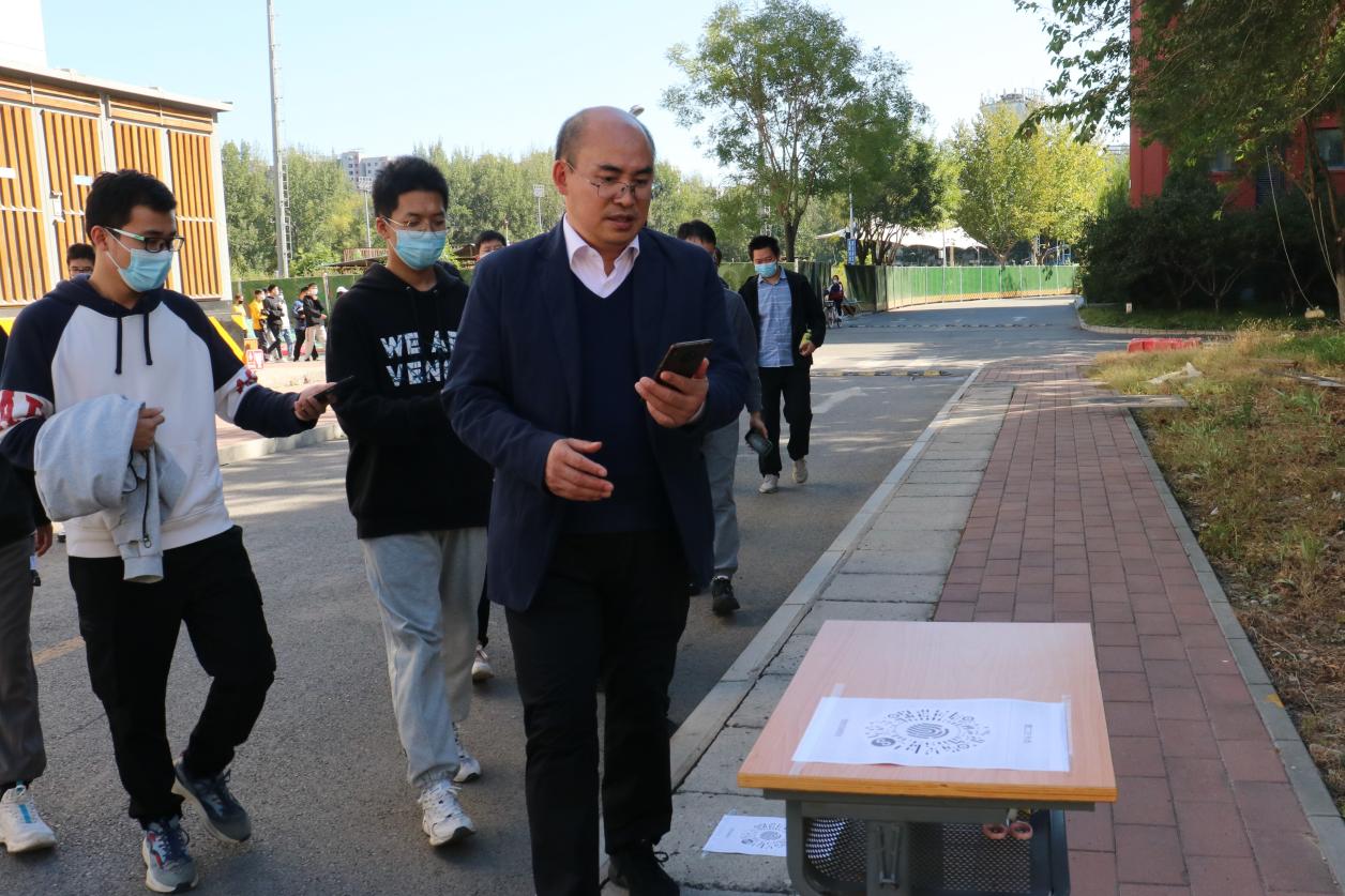 活动起点位于主楼礼堂东广场,终点位于主楼B座南侧,途中设置两个打卡点,第一个打卡点位于体育馆西北角,第二个打卡点位于教职工宿舍东北角,每个打卡点都有研究生会工作人员饱含热情的组织大家扫码签到,师生需要在打卡点及终点三处签到,录入个人信息以保证全程参与。同时,学院还为未返校的师生提供了居家运动打卡的活动方式,希望因疫情无法返校的师生也能参与到这场活动中。