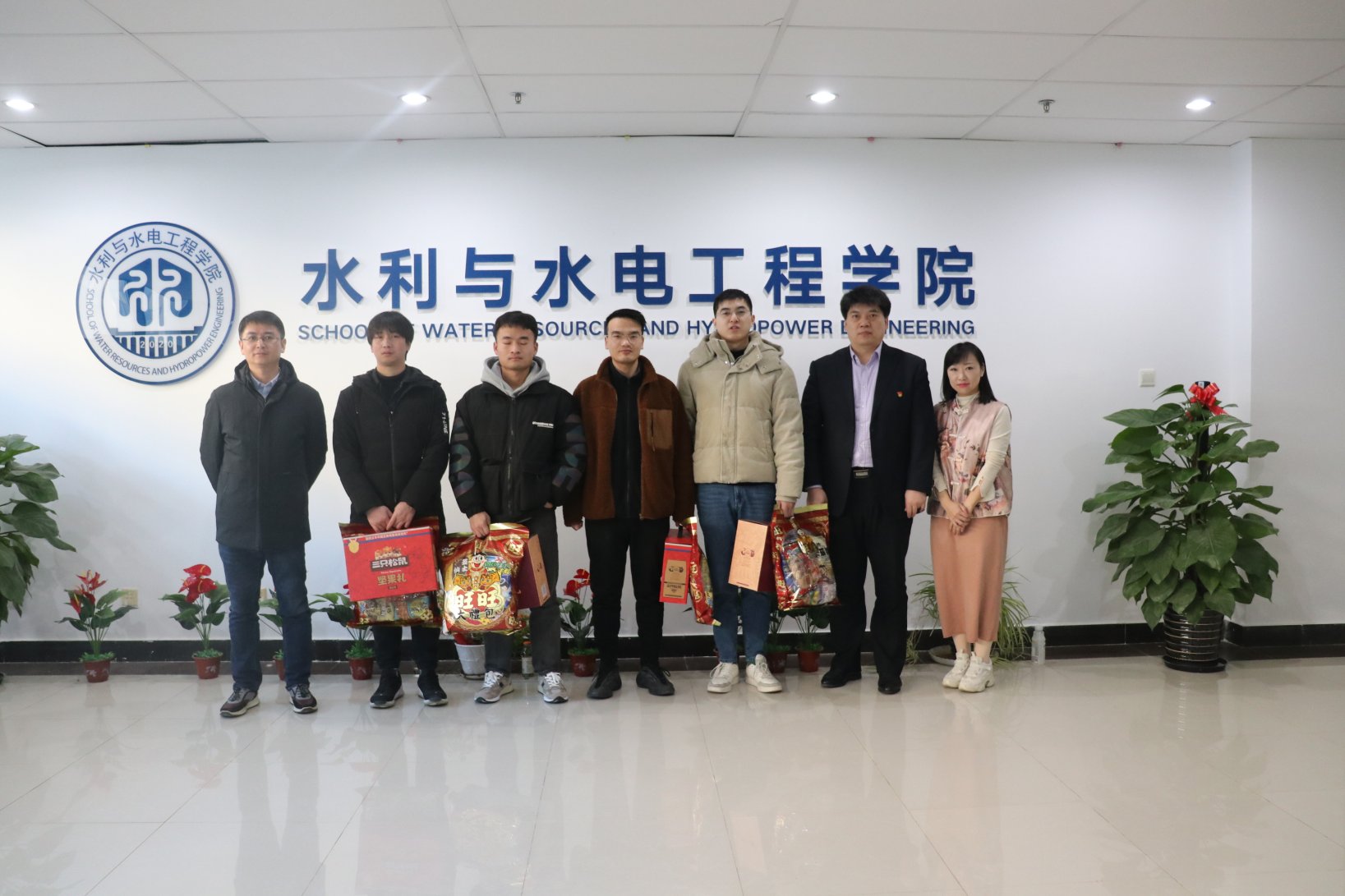 1月28日上午,水电学院开展慰问寒假留校研究生活动。受疫情影响和科研工作需要,学院有3位河南籍学生、1位云南籍学生留校过春节。学院一直很关心留校学生的学习和生活,副院长(主持工作)张尚弘、党委副书记杜广微、研究生导师申艳和办公室主任孙爱国参加了慰问活动,与同学们畅聊留校生活和春节安排,为学生们送上新春祝福和关怀。