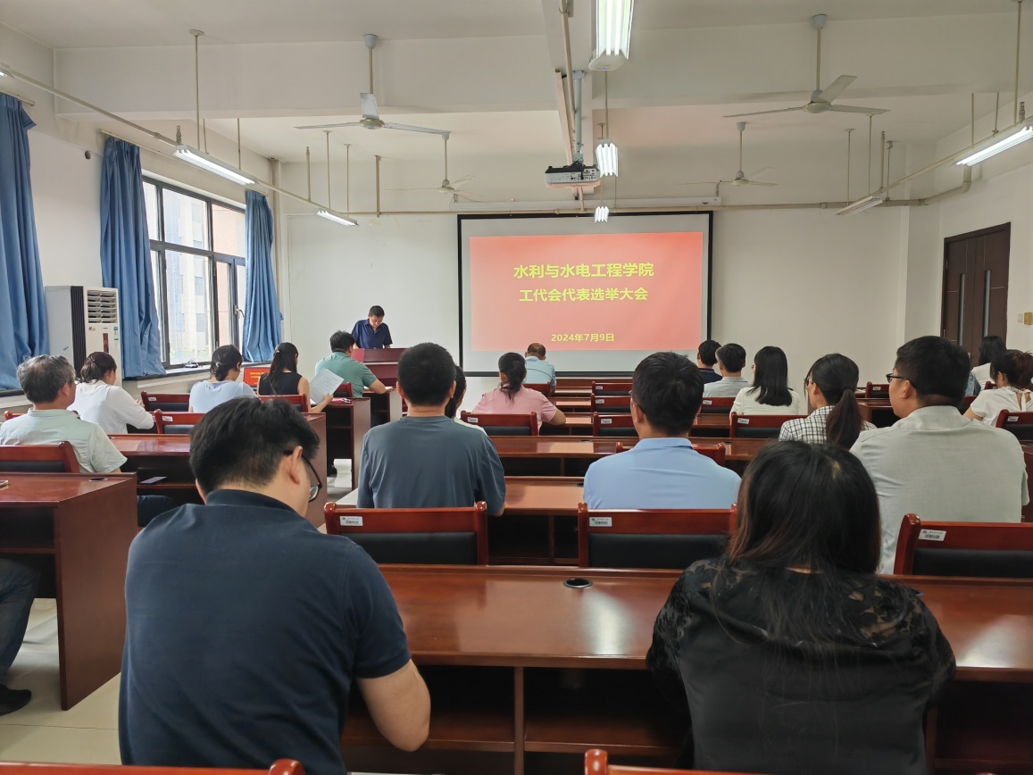 7月9日下午,水利与水电工程学院分工会换届大会暨工代会代表选举大会胜利召开,选举产生新一届分工会委员会和工代会代表。全体院领导、工会会员出席大会,会议由水利与水电工程学院分工会副主席孙爱国主持。