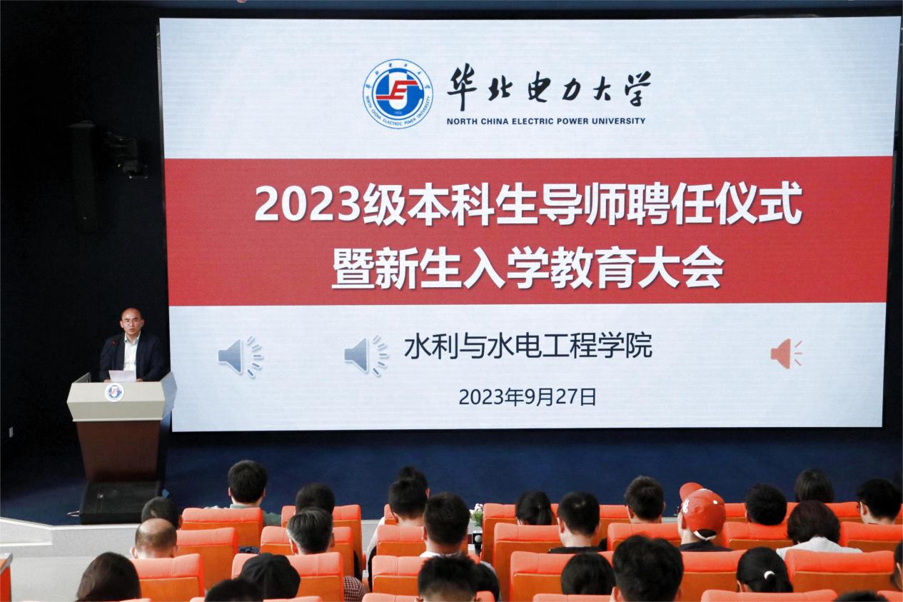 9月27日下午,水利与水电工程学院在教一14阶梯教室举办了2023级本科生导师聘任仪式暨新生入学教育大会。学院全体院领导出席大会,2023级本科生导师、班主任和全体2023级本科新生参加会议,会议由学院党委副书记杜广微主持。