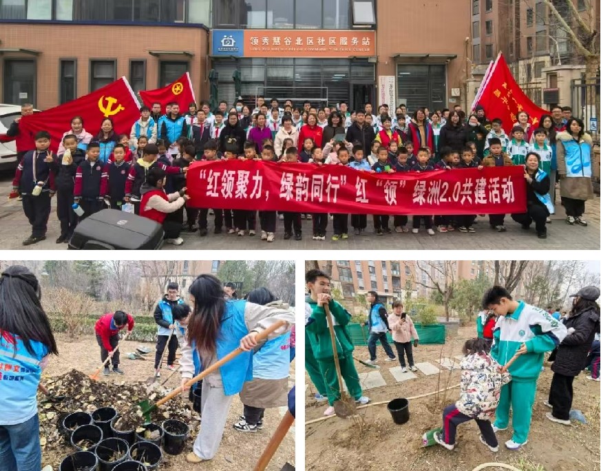 学院团委与史各庄街道创新构建“党建引领、校地联动、生态共治”的志愿服务新模式,通过共建校外志愿服务基地,近年来累计开展志愿活动30余项,参与学生超500人次。在第四十六个植树节到来之际,街道联合学院开展“红领聚力,绿韵同行”红“领”绿洲2.0共建活动,以“党建红”引领“生态绿”。在活动过程中,同学们用自身知识帮助社区顺利完成植树活动。此次行动既是校地共建志愿服务基地的提质升级,更彰显了新时代水利青年“扛牢生态文明旗、走实双碳先锋路”的使命担当。学院将持续深化社区志愿实践基地建设,让青春力量在美丽中国建设的壮阔图景中绽放绚丽之花。